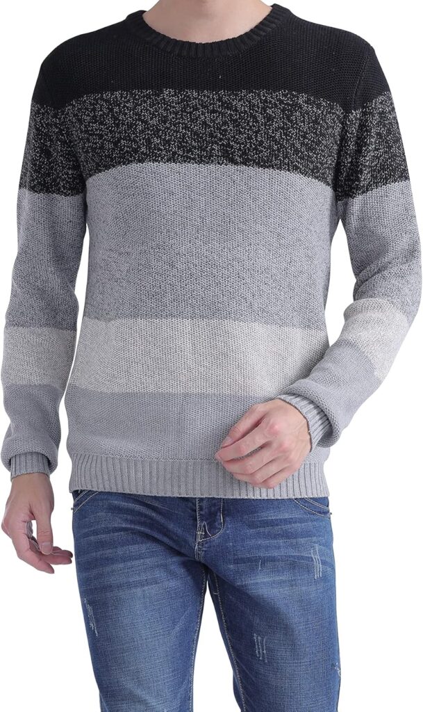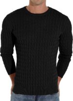 - FEATURES – Threaded crew neck/Thick knit sweater/Classic design/Elastic ribbed hem. Solid color makes these men’s cable knit sweater classic and versatile, and the striped pattern adds extra texture.