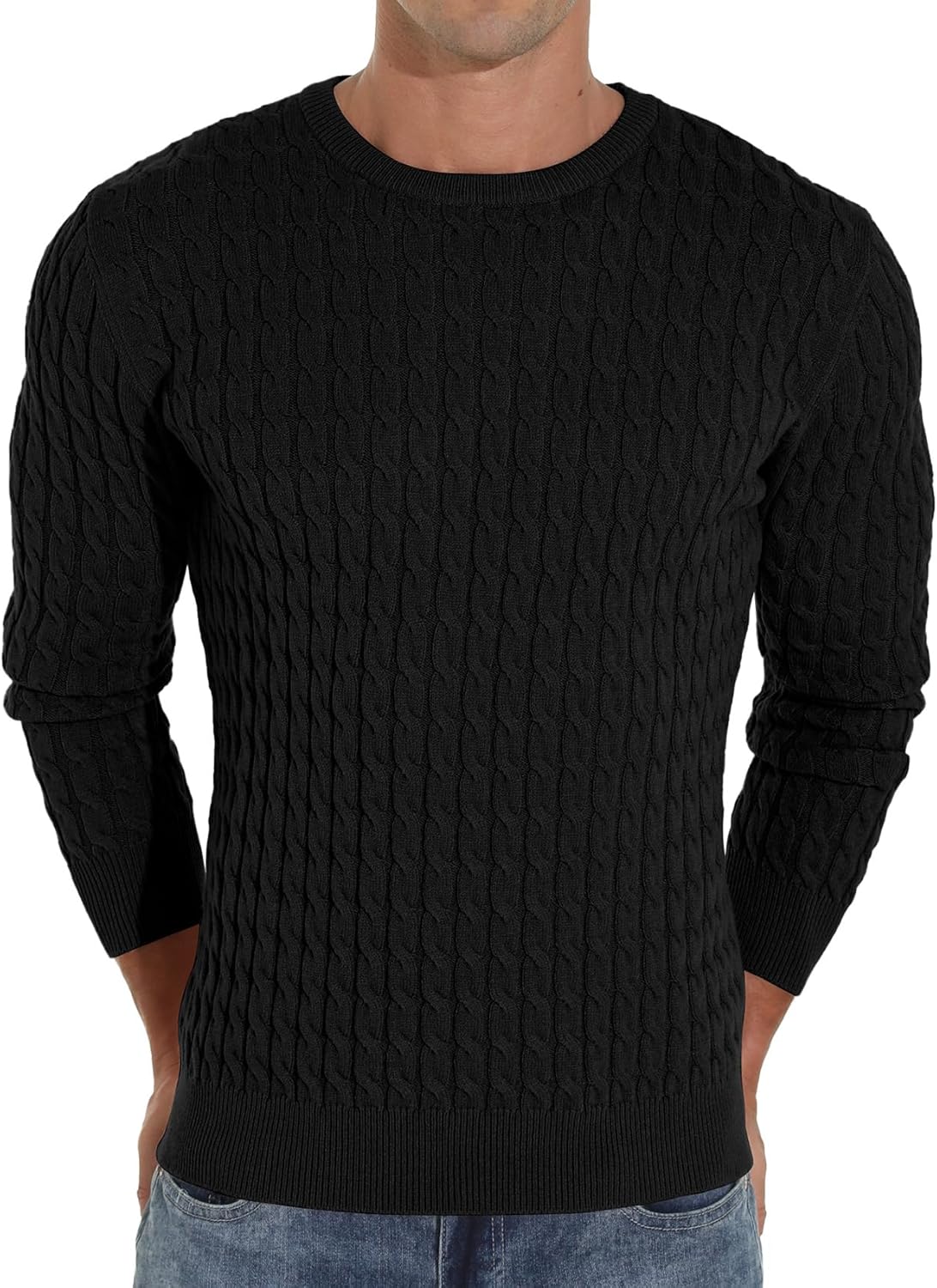 Men’s Cable Knit Pullover Sweater Classic Crewneck Sweater Soft Casual Sweaters with Ribbing Edge
