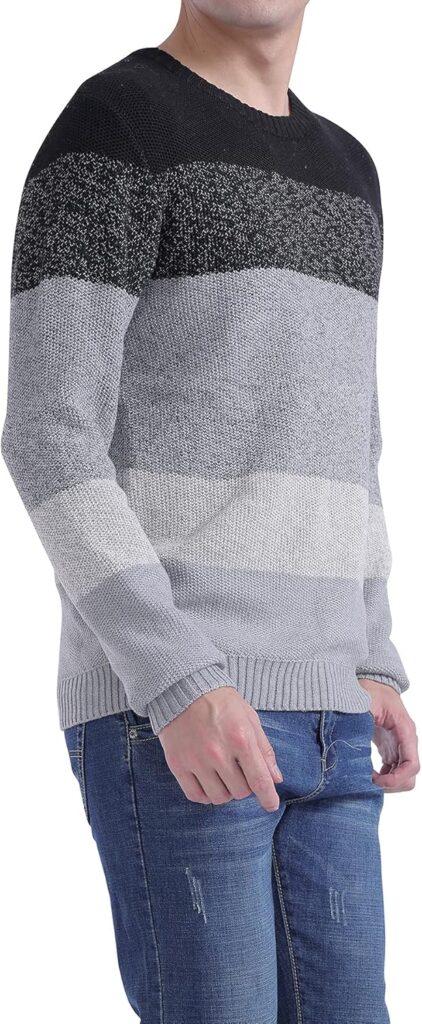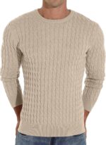 - FEATURES – Threaded crew neck/Thick knit sweater/Classic design/Elastic ribbed hem. Solid color makes these men’s cable knit sweater classic and versatile, and the striped pattern adds extra texture.