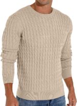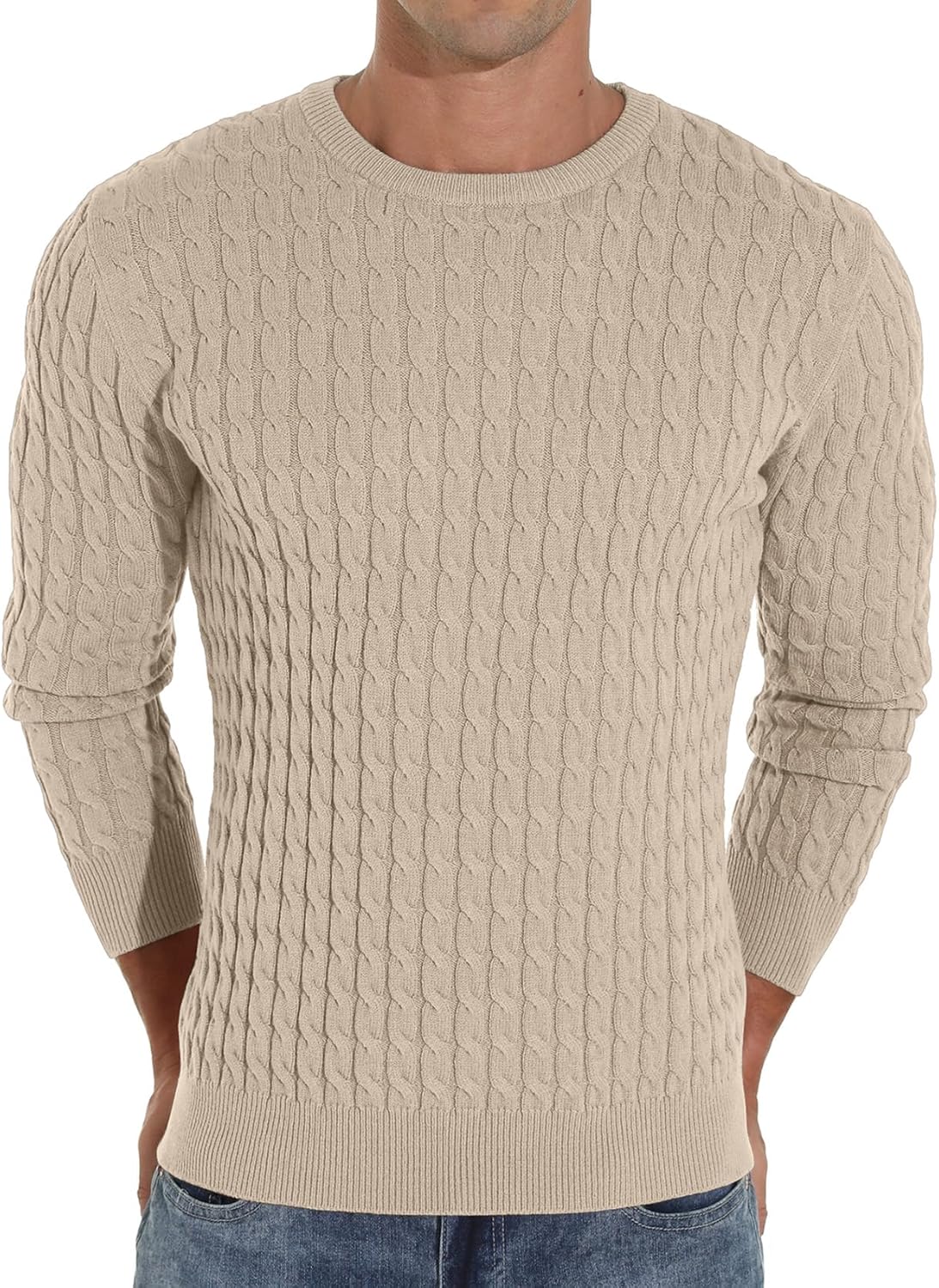 Men’s Cable Knit Pullover Sweater Classic Crewneck Sweater Soft Casual Sweaters with Ribbing Edge