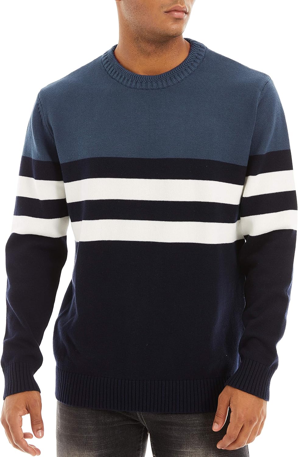 Men’s Crewneck Sweater Color Block Striped Sweatshirt Soft Thermal Knitted