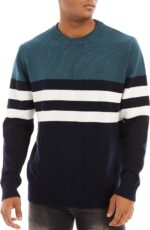 Men’s Crewneck Sweater Color Block Striped Sweatshirt Soft Thermal Knitted