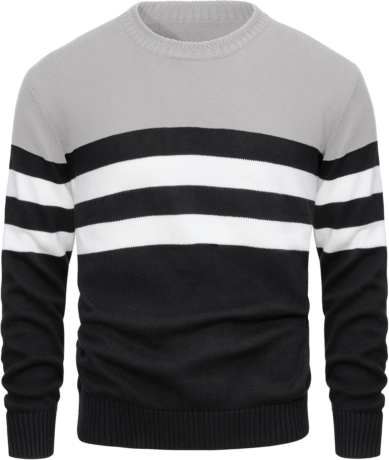 Men’s Crewneck Sweater Color Block Striped Sweatshirt Soft Thermal Knitted