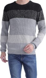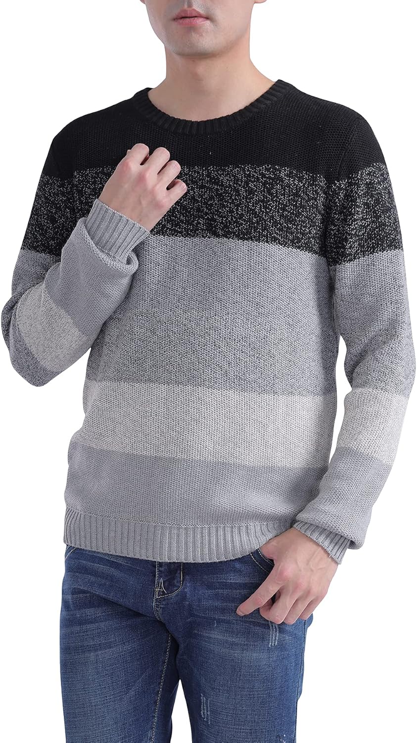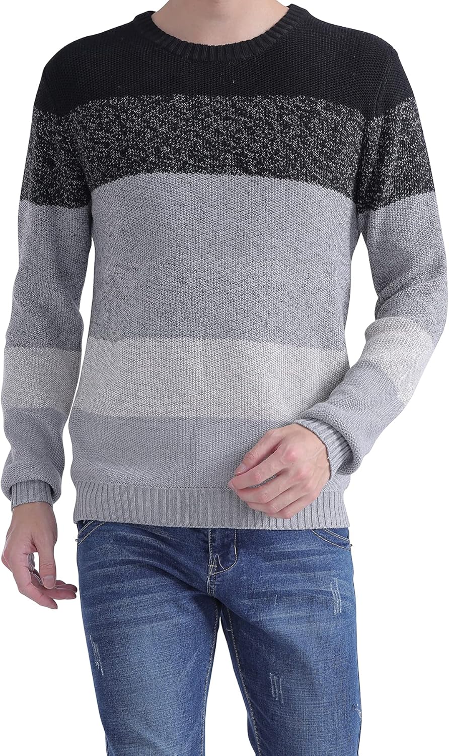 Men’s Fashion Crewneck Striped Pullover Sweater Soft Thermal Cotton Knitted Color Block Sweaters