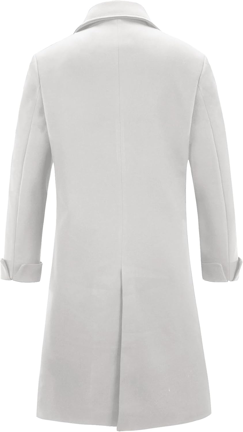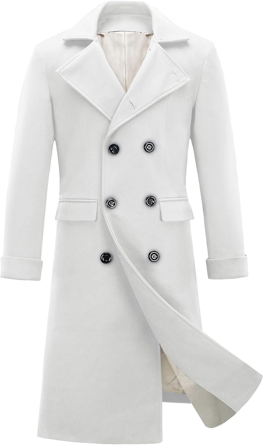 Men’s Trench Coat Notch Lapel Slim Fit Double Breasted Wool Blend Long Pea Coat Winter Warm Overcoat