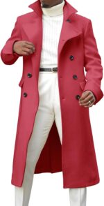 Men’s Notch Lapel Double Breasted Long Trench Coat Casual Cotton Blend Peacoat